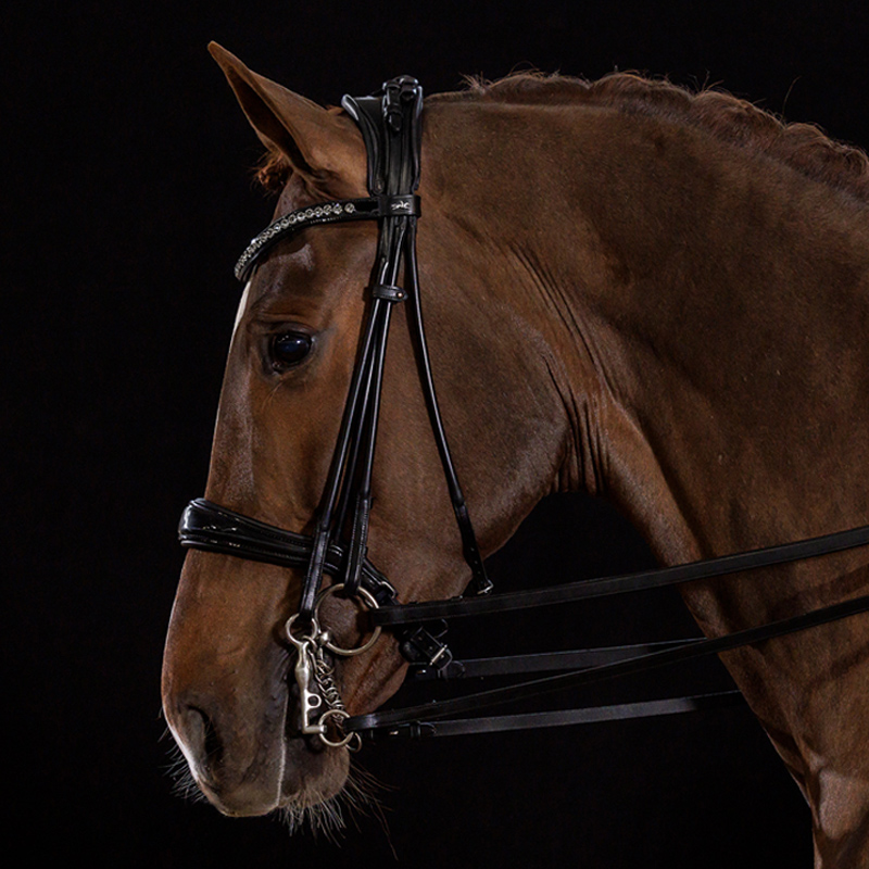 - innovatives Kopfstück, das die Riemen der Backenstücke und des Nasenbandes optimal positioniert