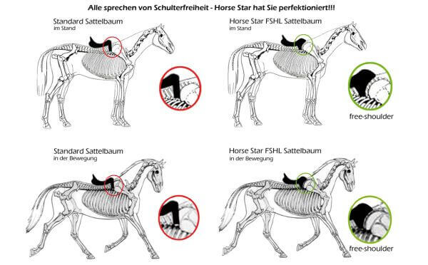 Zurückgesetztes Baum- und Kopfeisensystem für mehr statische Bewegungsfreiheit im Schulterbereich Ihres Pferdes!