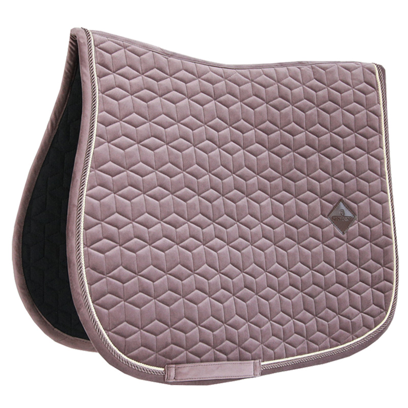 Super stylische und stilvolle Schabracke aus Samt mit doppelt gedrehter Bordüre. Die Samtschabracke bietet eine hervorragende Polsterung zwischen dem Rücken des Pferdes und dem Sattel und schützt gleichzeitig vor Verspannungen. Die Schabracke hat keine lästigen Schlaufen zur Befestigung am Sattel, sondern nur einen Nylonriemen für den Gurt. Das dezente Logo aus Kunstleder ist immer an einer zentralen, etwas höheren Stelle platziert, so dass bei Bedarf immer Platz für die Bestickung mit ihrem eigenen Logo verfügbar ist. Maschinenwaschbar bei 30°, kein Trockner.